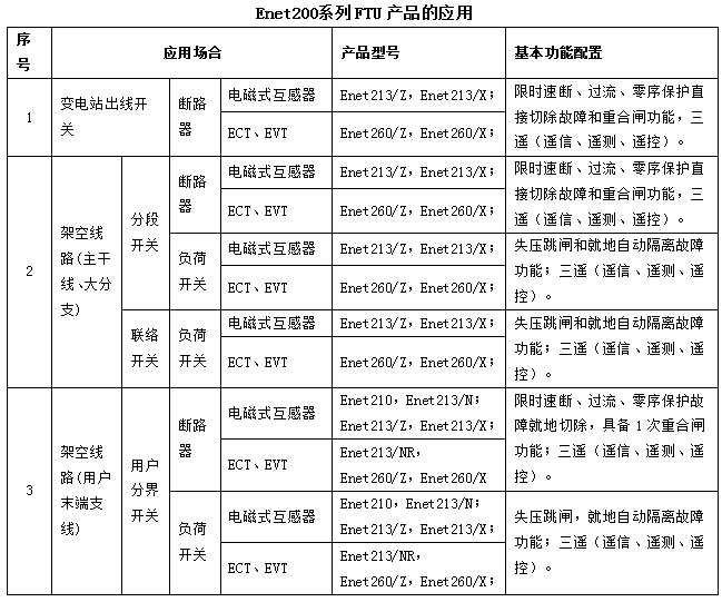 Enet200系列FTU和斷路器配合,可以應用于變電站出線開關、分段/聯(lián)絡斷路器、用戶分界斷路器,具備相間故障檢測及跳閘功能,單相接地故障檢測及跳閘功能。