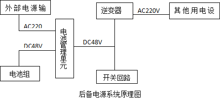 正常供電時,由外部電源輸入,經過電池管理單元提供開關的控制和操作電源,同時經過逆變器,給網絡設備、視頻等其他用電設備等供電。外部電源同時給電池組充電;外部電源失電時,由電池組通過電池管理單元自動接續(xù),給開關回路和其他用電設備供電。